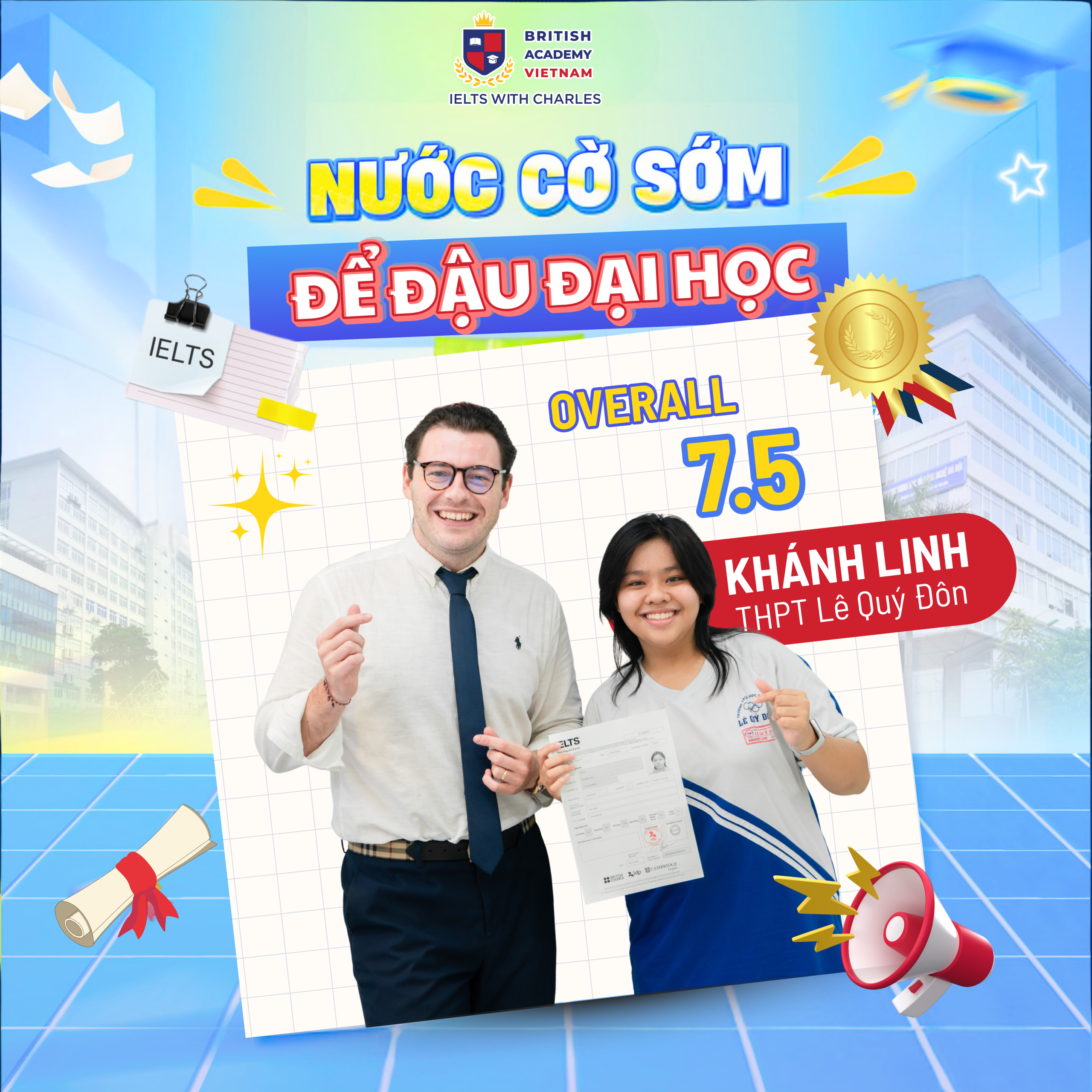 Khánh Linh, một học sinh chăm chỉ và quyết tâm, đã đạt 7.5 IELTS Academic chỉ sau 6 tháng học tại trung tâm. Dù đã có nền tảng tiếng Anh tốt, Linh vẫn cần trau dồi thêm kiến thức học thuật chuyên sâu và kỹ năng làm bài thi. Nhận thấy điều này, mẹ của Linh đã tin tưởng chọn IELTS With Charles làm nơi đồng hành cùng con.