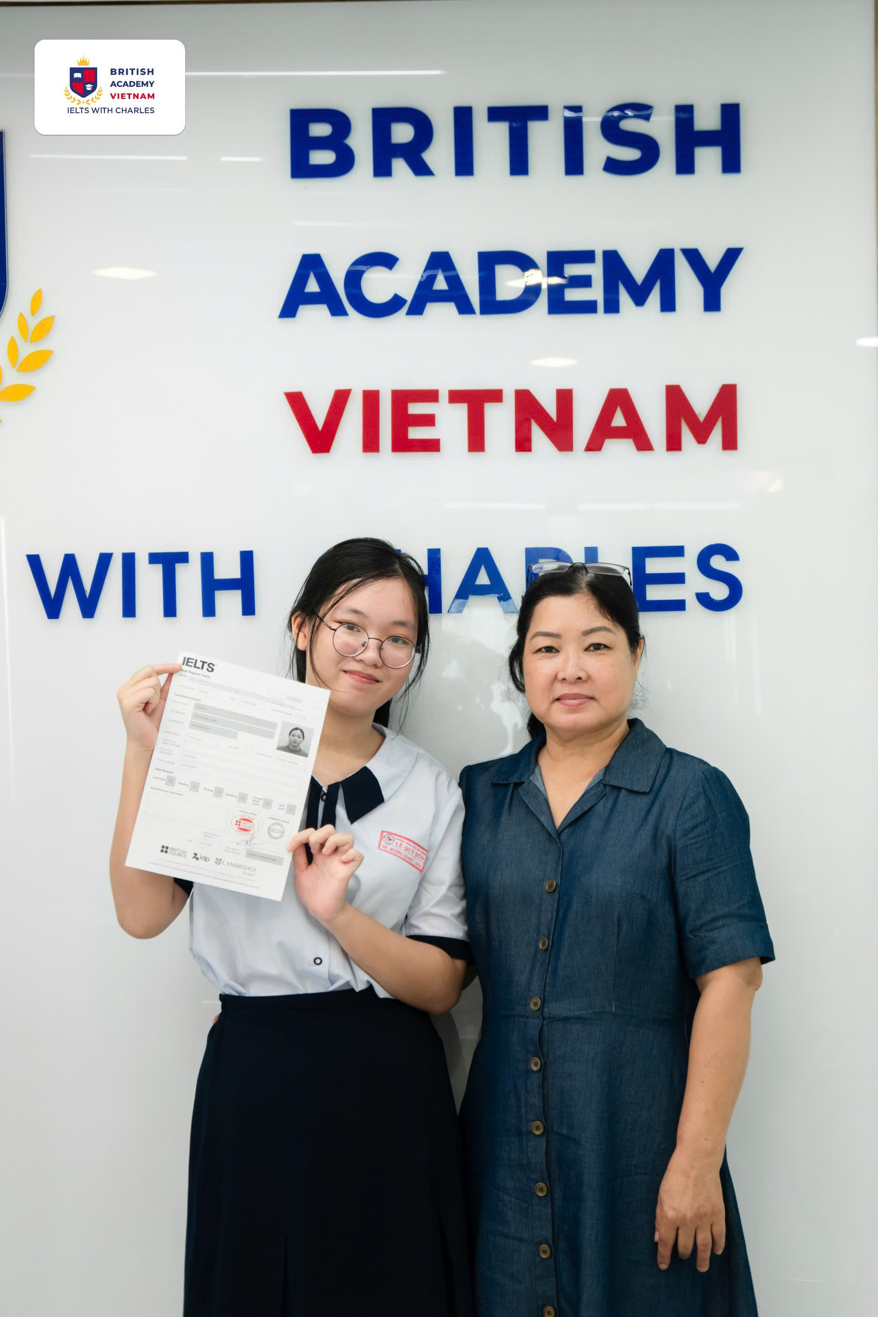 Chính nhờ quyết định, và đầu tư đường dài của mẹ Quyên, cùng việc chị support con hết mình trong suốt thời gian con học, mẹ Quyên đưa bạn đến trung tâm IELTS with Charles học và đợi đón con về mỗi buổi, bé cũng rất chăm ngoan, đi qua hết bộ sách nền học thuật mà Trung Tâm soạn, sau đó học dạng đề thi rất kĩ cùng Thầy Cô và luyện đề; cả khóa con chăm ngoan học. Cô Emmy cũng rất quý khi con học lực khá rồi, mẹ con vẫn quyết tâm cho con học thoải mái 1.6 năm để nhắm band cao của IELTS.