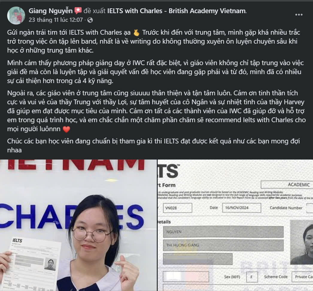 Tham khảo fanpage của Trung Tâm IELTS with Charles tại đây!